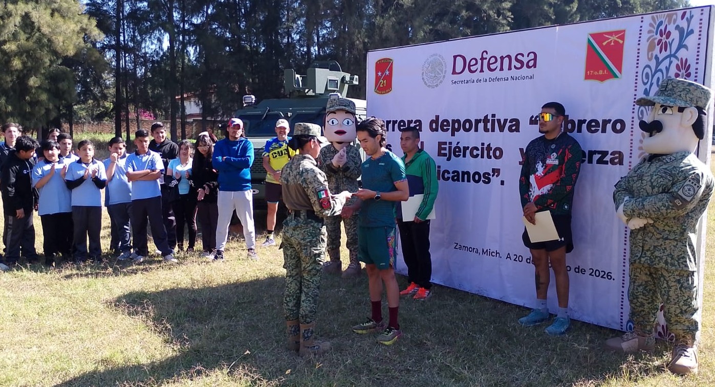 La Secretaría de la Defensa Nacional, a través de la Comandancia de la 21/a. Zona Militar, hace del conocimiento a la opinión pública que, en el marco de los eventos de “Febrero, mes del Ejército y Fuerza Aérea Mexicanos”, esta fecha, personal del Ejército Mexicano realizó un Carrera Deportiva en Zamora.