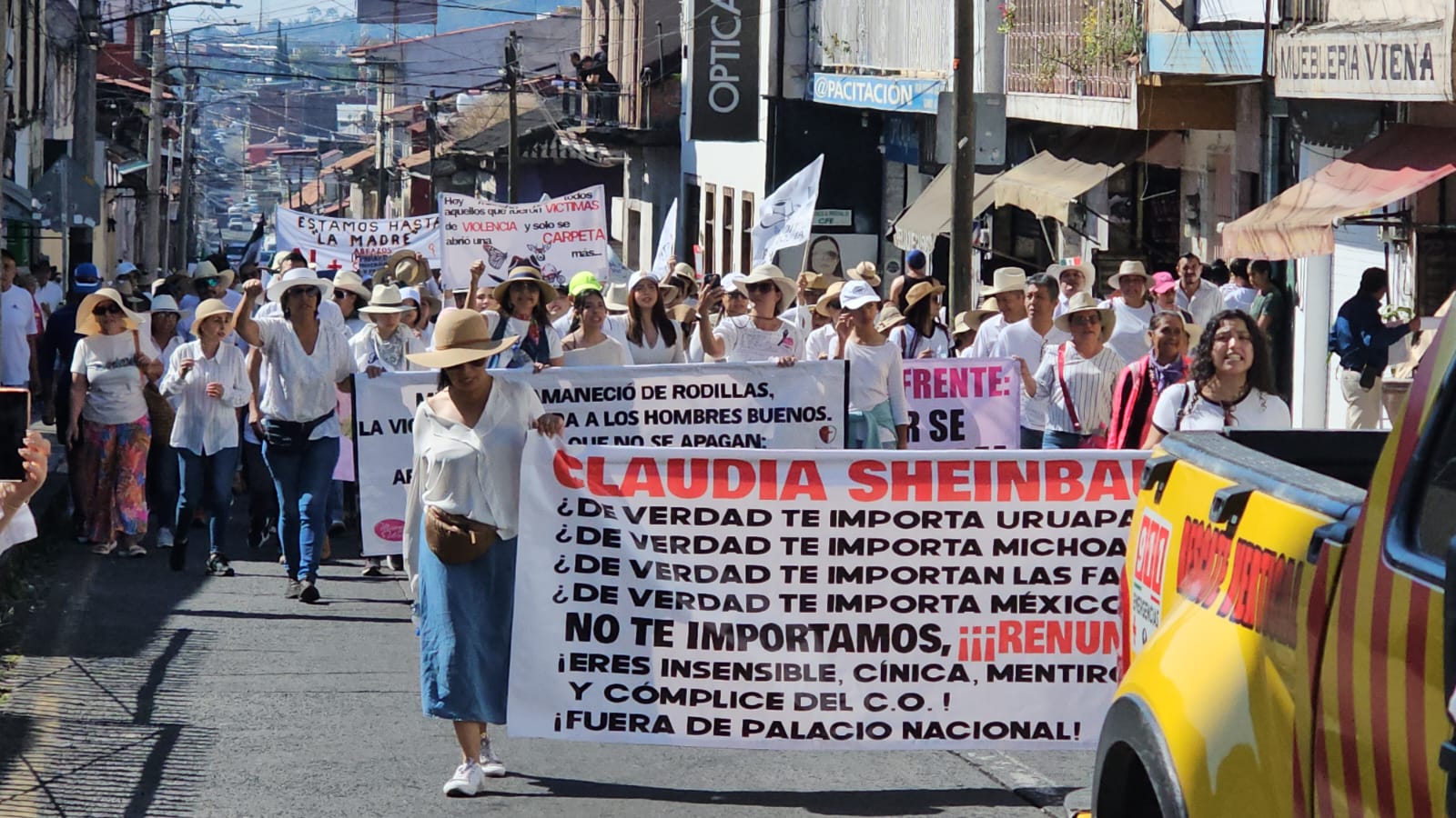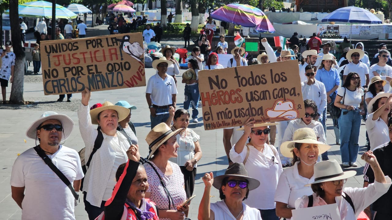 La manifestación recorrió más de 40 cuadras hasta arribar hasta el Centro de la ciudad. Mientras iba avanzando la protesta se unieron otros tantos seguidores el Movimiento del Sombreo, logrando duplicar el grueso de la contingente, al grito de «alto a la violencia» y «Carlos Manzo vive, su lucha sigue».