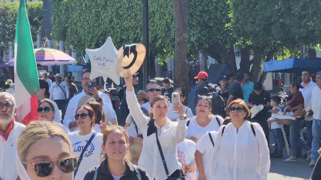 El contingente se reunió en el estacionamiento de la Plaza 500 ubicada en el Libramiento y el Boulevard Industrial, hasta donde llegaron ciudadanos con ropas blancas y pancartas con leyendas como «Justicia para Carlos Manzo», «Revocación», y «Justicia, Justicia para todos los caídos».