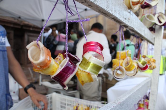 Una dulce tradición que sólo se puede degustar en Semana Santa son las charamuscas o las coronitas de caramelo que se ofrecen afuera de algunos templos.