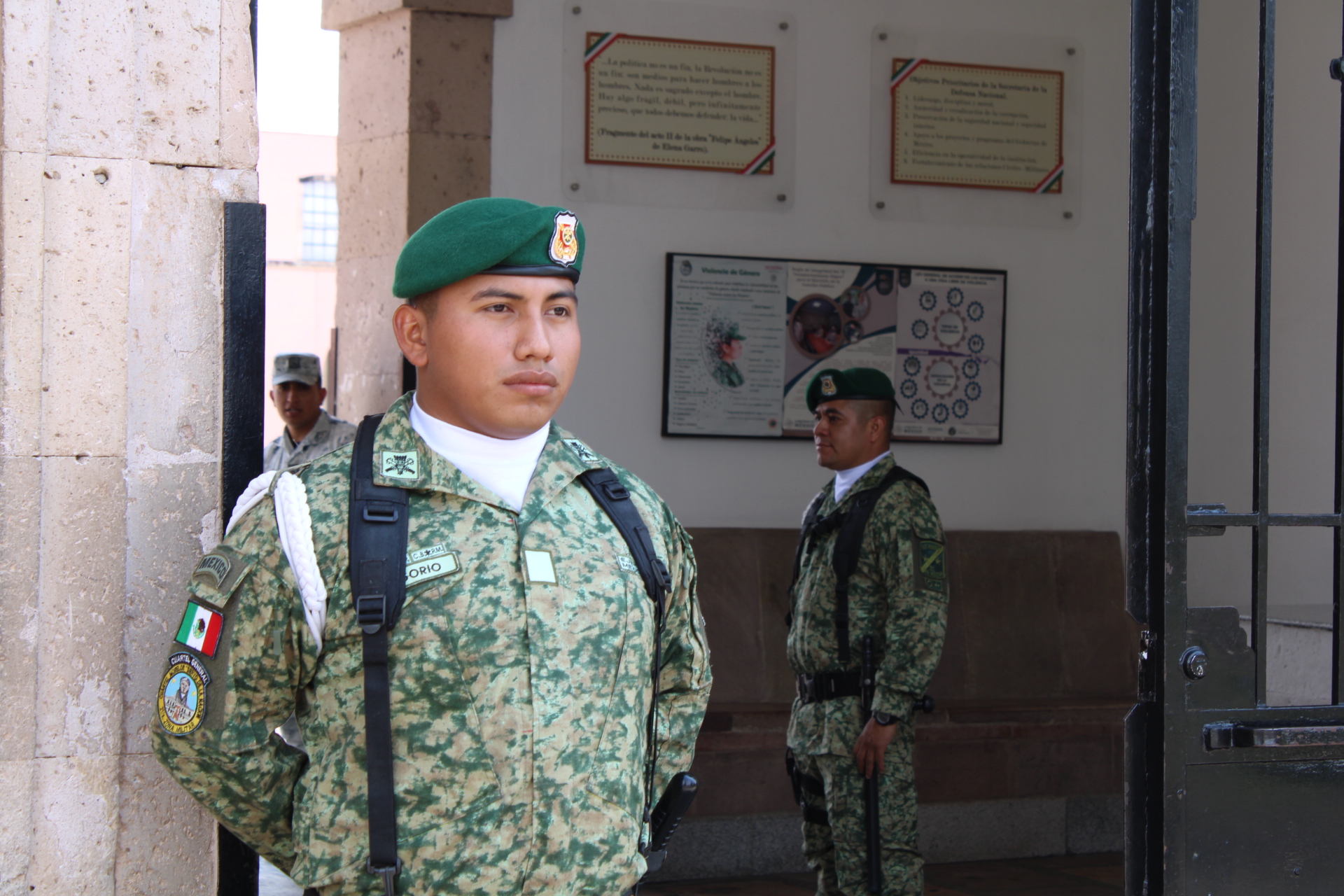 Destacó que los Policías Militares son los encargados de la seguridad, identificación y revisión de todo el personal que quiera ingresar a los cuarteles y hacer que se cumpla con la disciplina y en caso de no ser así, aplicar un correctivo, esto último enfocado en personal militar, ya que hay ciertos artículos que no se pueden ingresar, como son armas, drogas, bebidas alcohólicas, cámaras, dispositivos de almacenamiento o el hacer uso de teléfonos dentro los cuarteles, entre otras restricciones.