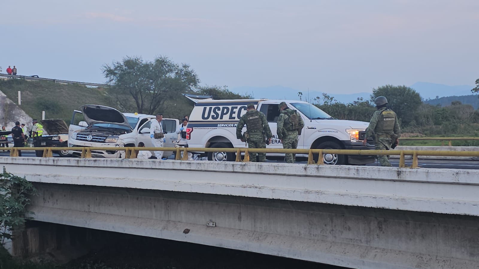 La zona fue acordonada por patrulleros y posteriormente arribaron los especialistas de la Unidad de Servicios Periciales y Escena del Crimen (USPEC), mismos que efectuaron la investigaciones correspondientes y trasladaron los cuerpos a la morgue. Los difuntos permanecen en calidad de no identificados.