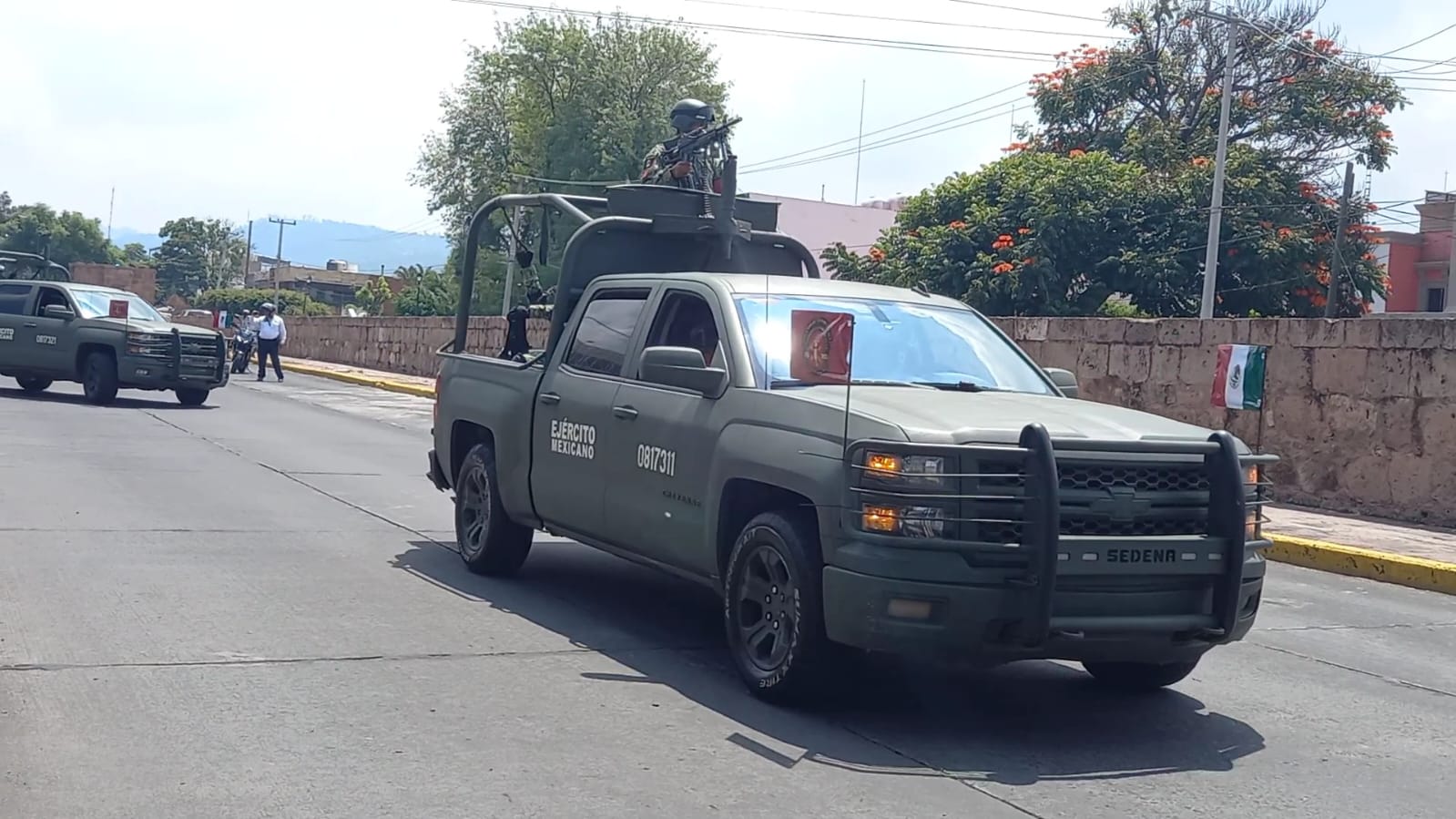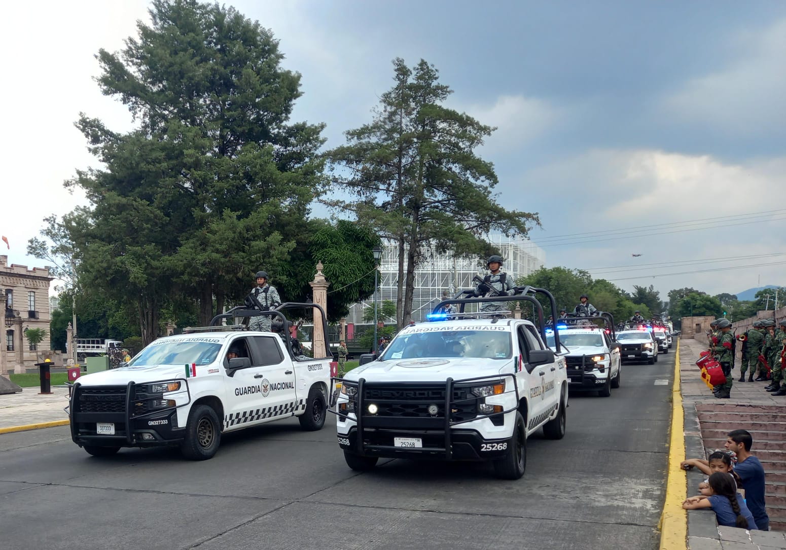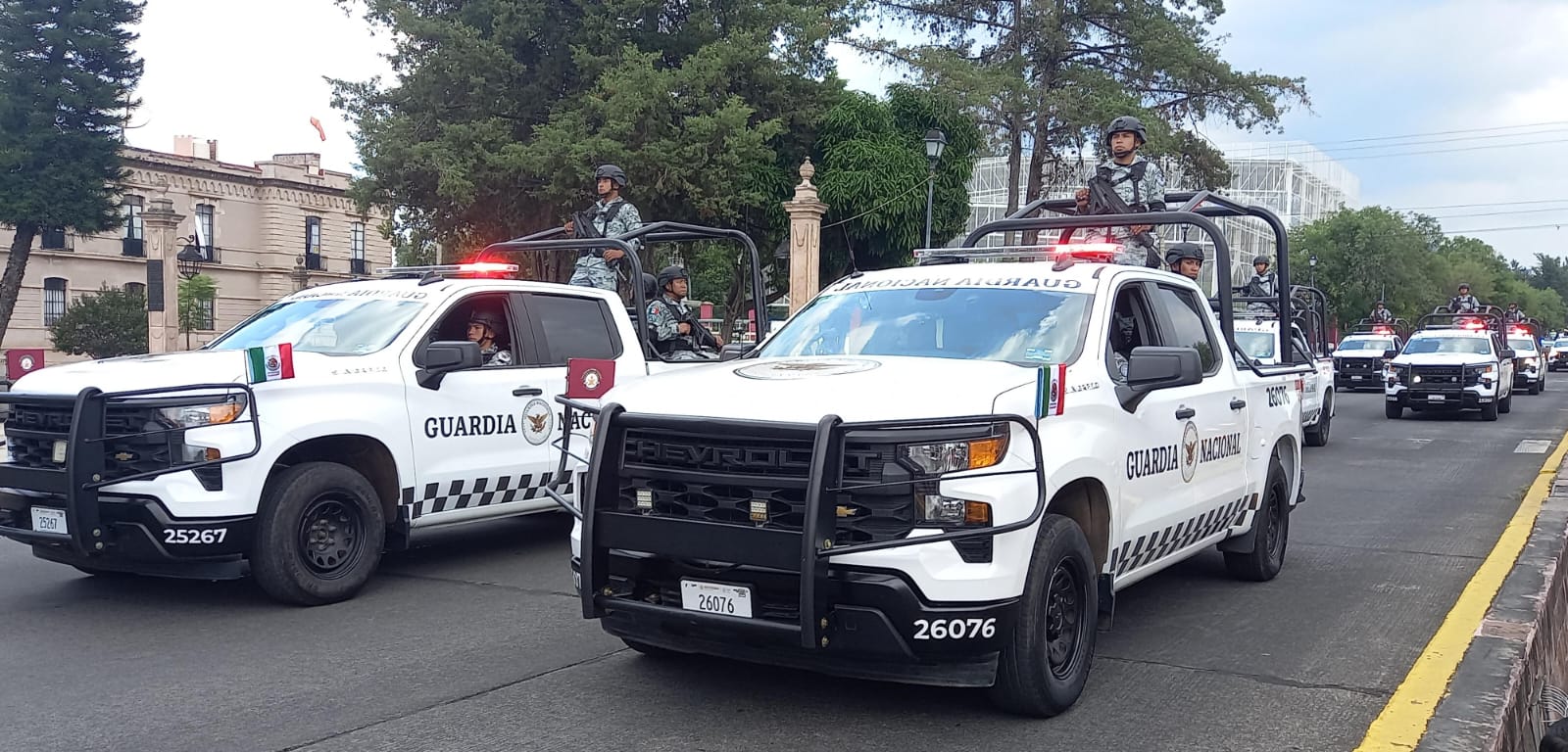 Morelia, Mich.- La Secretaría de la Defensa Nacional, a través de la Comandancia de la 21/a. Zona Militar, informa que mediante un despliegue de más de 600 elementos del Ejército y Guardia Nacional, esta tarde salen para incrementar la seguridad y garantizar la tranquilidad de la población, durante los festejos patrios del 15 y 16 de septiembre, en el marco del 213 aniversario de la Independencia de México.