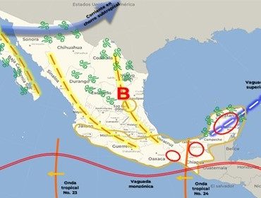 Se espera cielo medio nublado con ambiente templado a cálido Para hoy, el ingreso de aire húmedo del mar Caribe y el avance de la onda tropical No. 24 sobre el sureste mexicano, interaccionarán con una vaguada en niveles altos de la atmósfera, y en combinación con la vaguada monzónica en superficie originarán lluvias puntuales intensas en Quintana Roo, Yucatán, Campeche, Chiapas, Tabasco y Oaxaca; y puntuales muy fuertes en […]