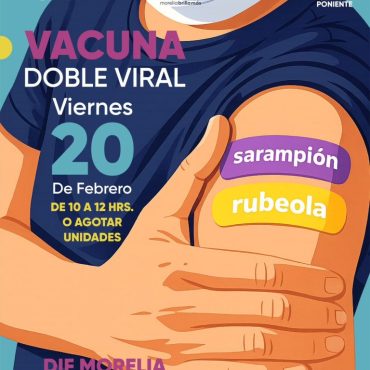 Será el viernes 20 de febrero en las oficinas centrales, la aplicación es sin costo, de 10:00 a 12:00 horas o hasta agotar unidades Ante la importancia de mantener altas coberturas de vacunación y prevenir posibles brotes, la presidenta honoraria del DIF Morelia, Paola Delgadillo Hernández, anunció la jornada de aplicación de vacuna doble viral contra sarampión y rubéola, que se realizará este viernes 20 de febrero, de 10:00 a […]