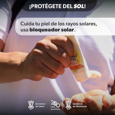 Se recomienda usar bloqueador solar aplicándose antes de salir a la calle o al hacer actividades al aire libre Para prevenir quemaduras por exposición prolongada al sol durante esta temporada de calor, la Secretaría de Salud de Michoacán (SSM) recomienda a la población usar bloqueador solar al salir a la calle o hacer actividades al aire libre. Este producto debe colocarse en capas uniformes que cubran brazos, piernas, manos, cara, […]