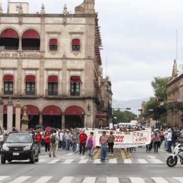 Encabezados por su líder José Luis Castillo no se retirarán hasta recibir respuesta Los centistas del ala Poder de Base han arribado ya al Centro Histórico tras haber marchado desde Casa de Gobierno. Permanecen ya a las afueras de la sede del Ejecutivo Estatal y frente a Catedral bloqueando el tráfico vehicular en la avenida Madero, colocando mantas con sus consignas en ambos inmuebles. Ahí estarán hasta ser recibidos por […]