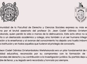 Destaca la dedicación que en vida tuvo en la enseñanza y los derechos humanos, dejando huella imborrable en la institución La Facultad de Derecho de la Universidad Michoacana condenó el que calificó como brutal asesinato del profesor Jean Cadet Odimba On’etambalako Wetshokonda, catedrático de esa institución, asesinado esta mañana de Miércoles en la Unidad Deportiva Morelos Indeco, en Morelia. Luego de conocerse la muerte del catedrático nicolaita, la comunidad de […]