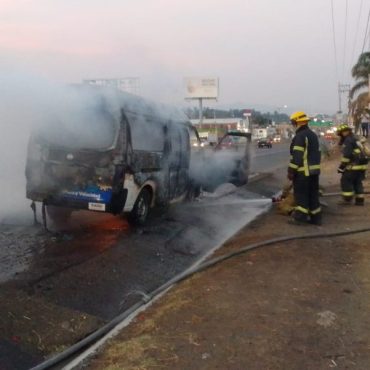 Se incendia combi azul en la entrada a Erandeni; no hay heridos
