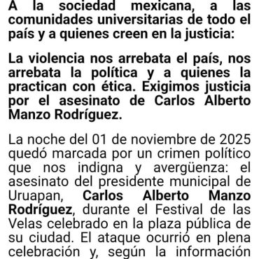 Al no tratarse de un partido político, éste cuenta con representación en el Congreso local a través del diputado Carlos Alejandro Bautista Tafolla Tras el asesinato del presidente municipal de Uruapan, Carlos Manzo, el gobernador Alfredo Ramírez Bedolla informó que será el Movimiento Independiente encabezado por el propio Manzo el que proponga a la persona que asumirá la Presidencia Municipal de manera sustituta. El mandatario explicó que, al no tratarse […]