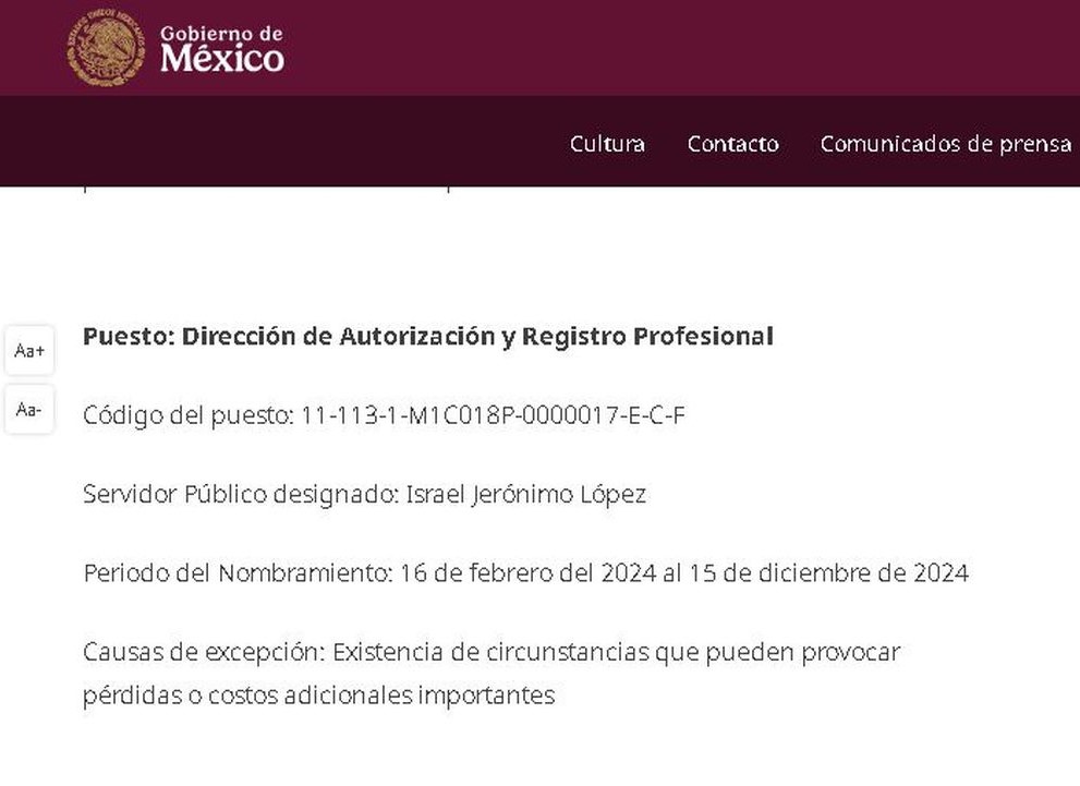 Las cédulas de maestría y doctorado del funcionario fueron emitidas precisamente por el área de Autorización y Registro Profesional, la misma que él mismo encabeza desde el 16 de febrero de 2024 (https://acortar.link/n7bjk4). Ambas cédulas fueron expedidas en abril de 2024, y de forma igualmente irregular: primero la de doctorado (4 de abril) y luego la de maestría (11 de abril).