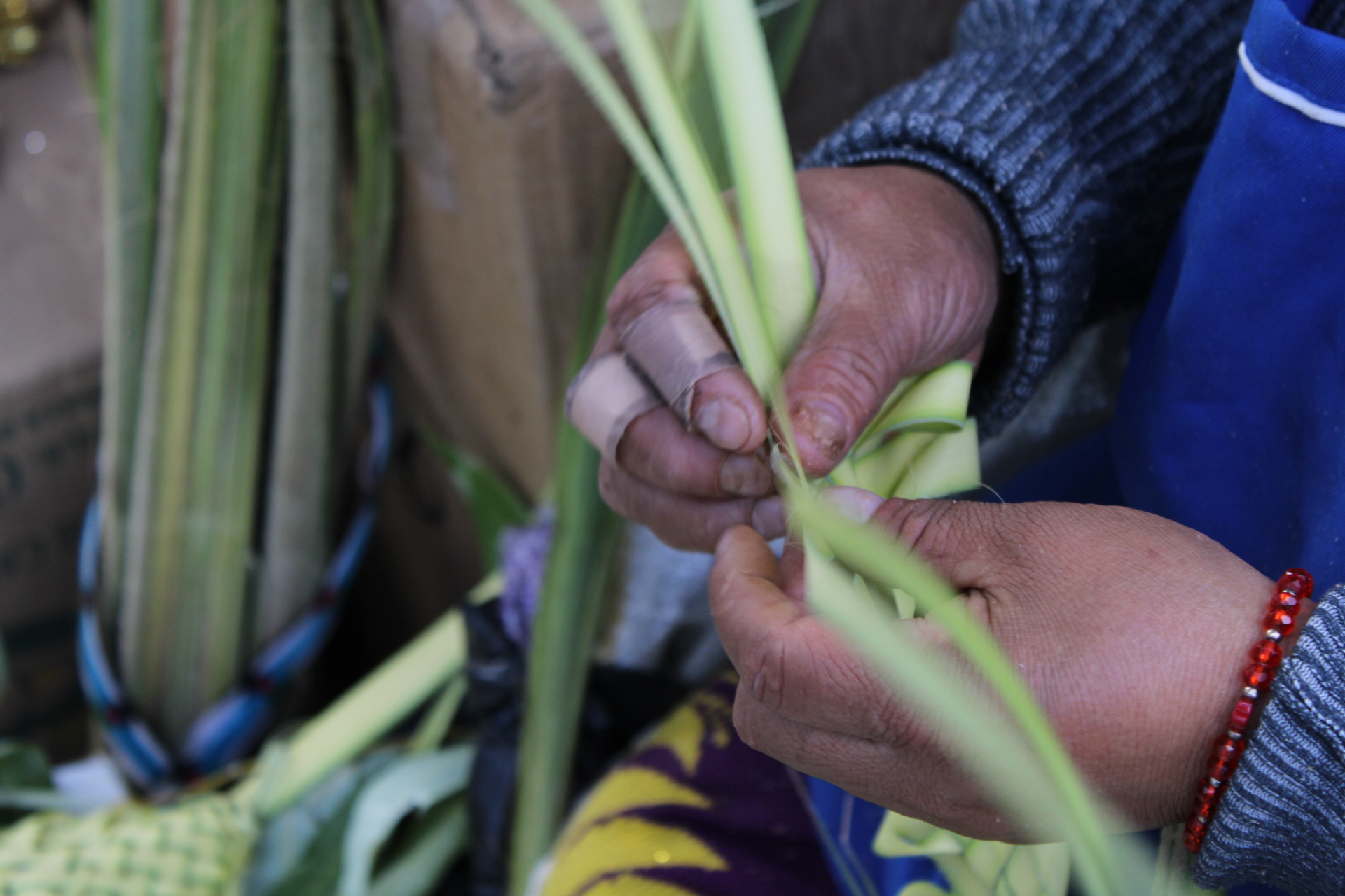 Con precios casi al doble de los materiales que utilizan, los artesanos siguen con la tradición de elaboración de palmas de Domingo se Ramos