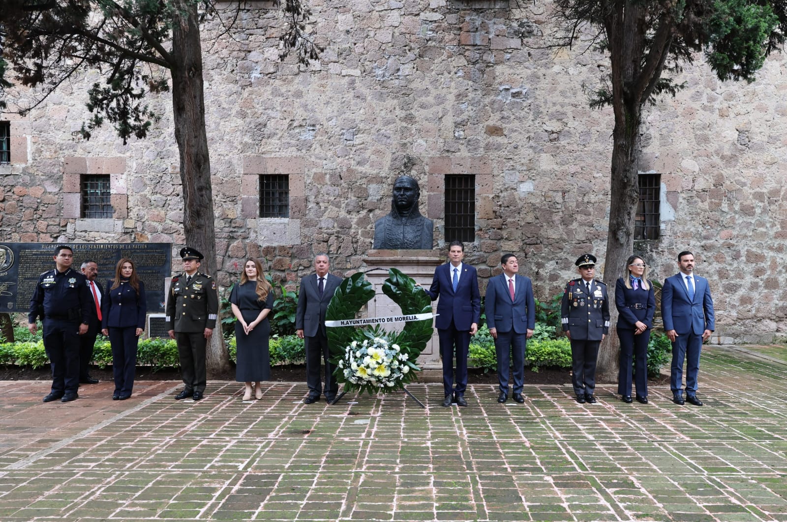 El acto fue encabezado por el Presidente Municipal, Alfonso Martínez Alcázar, acompañado por Luis Navarro García, Secretario de Finanzas del Estado, en representación del Gobernador de Michoacán, Alfredo Ramírez Bedolla; Hugo Alberto Gama Coria, Magistrado Presidente del Supremo Tribunal de Justicia del Estado; Juan Bravo Velázquez, General de Brigada del Estado Mayor y Comandante de la 21ª Zona Militar; Roberto Eduardo Molina García, General de Brigada del Estado Mayor y Coordinador Estatal de la Guardia Nacional; Pablo Alarcón Olmedo, Comisionado de Seguridad Ciudadana; y Yankel Benítez Silva, Secretario del Ayuntamiento de Morelia.
