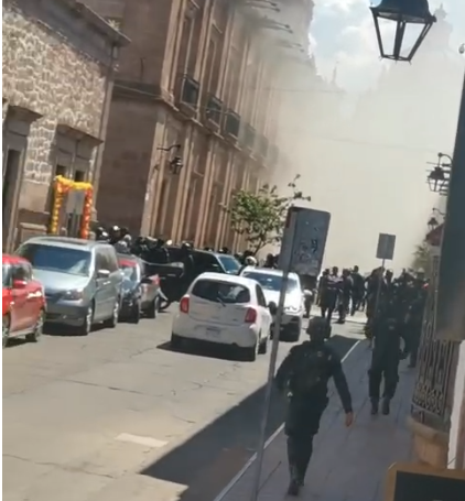 Las manifestación que varias organizaciones indígenas realizaban con motivo del 12 de octubre genero violencia cuando comenzaron a atacar diversos vehículos, entre ellas dos de los llamados trolebuses de turismo, motivo por el cual tuvo que intervenir la fuerza pública que utilizó gases para dispersar a los inconformes, generado que varios negocios cerraran sus puertas y visitantes al Festival Internacional de Cine abandonaran el corazón de la capital michoacana.