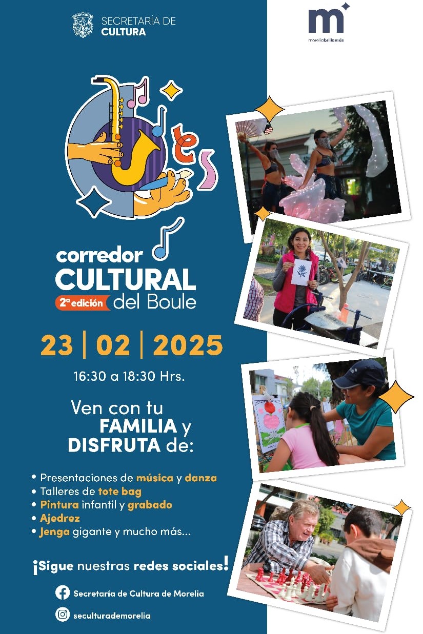 Este domingo el Boulevard García de León se llenará del talento local de artistas y talleristas que participarán en la segunda edición del «Corredor Cultural”, una actividad que organiza el Gobierno de Morelia encabezado por el Presidente Municipal, Alfonso Martínez Alcázar, con el objetivo de ofrecer a las y los ciudadanos un espacio recreativo y de convivencia familiar.