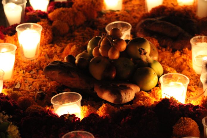 La costumbre señala que se pone comida, pan, fruta y bebidas, las cuales además de ofrecerse como ofrenda para que las ánimas regresen a degustar de sus platillos favoritos, también se disfrutan en compañía de los familiares que velan en su espera.