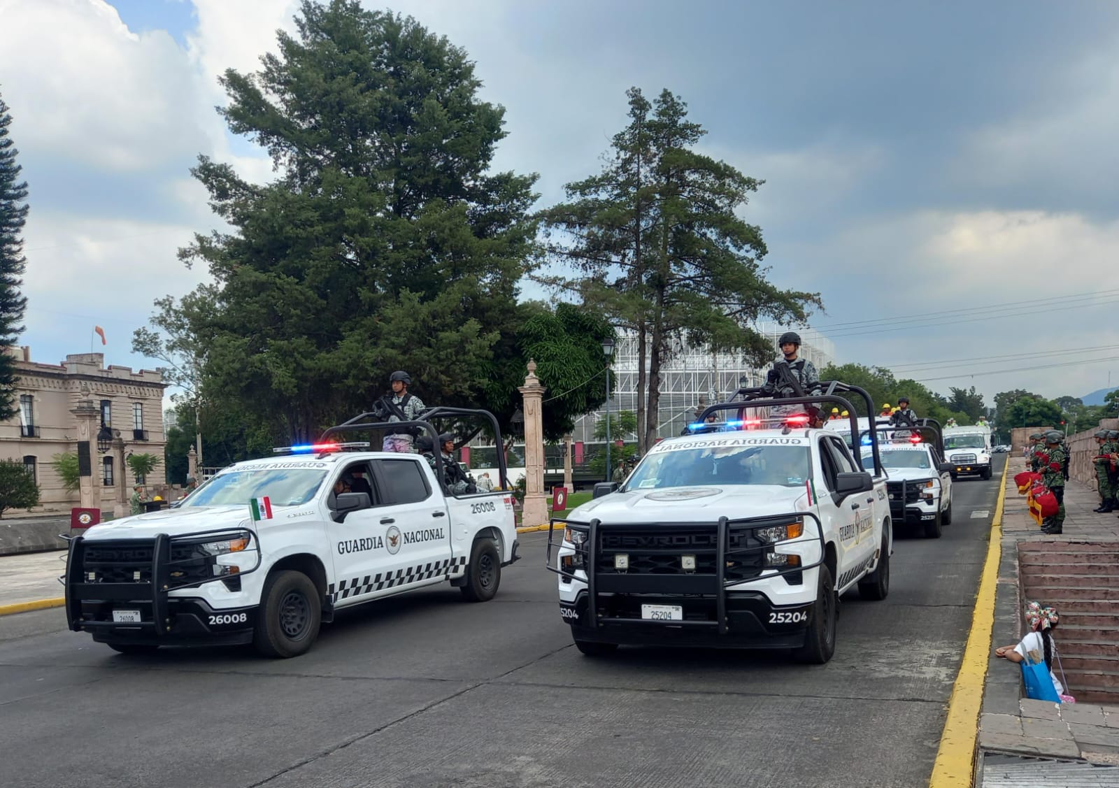 Morelia, Mich.- La Secretaría de la Defensa Nacional, a través de la Comandancia de la 21/a. Zona Militar, informa que mediante un despliegue de más de 600 elementos del Ejército y Guardia Nacional, esta tarde salen para incrementar la seguridad y garantizar la tranquilidad de la población, durante los festejos patrios del 15 y 16 de septiembre, en el marco del 213 aniversario de la Independencia de México.