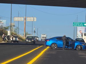 Luego, dos automotores protagonizaron un encontronazo sobre la carretera Morelia-Recinto Ferial, en las inmediaciones de Ciudad Salud, situación que fue reportada a los policías con el objetivo de emprender el peritaje respectivo.